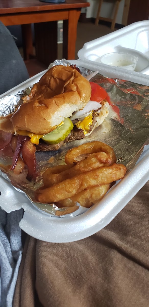 Walking inside, the aroma of sizzling burgers and smoked brisket fills the air, mingling with the laughter of locals catching up over cold drinks. From the moment you take a seat, you can tell the service here is genuine, not rehearsed. The menu offers a satisfying mix of American comfort food and hearty Midwest classics. Whether it’s the perfectly seasoned hand-cut fries or the melt-in-your-mouth pulled pork sandwich, everything tastes homemade-because it actually is. During one visit, I watched the cook preparing fresh patties on the grill, chatting easily with regulars who all seemed to know each other by name. That kind of familiarity speaks volumes about a place’s character.