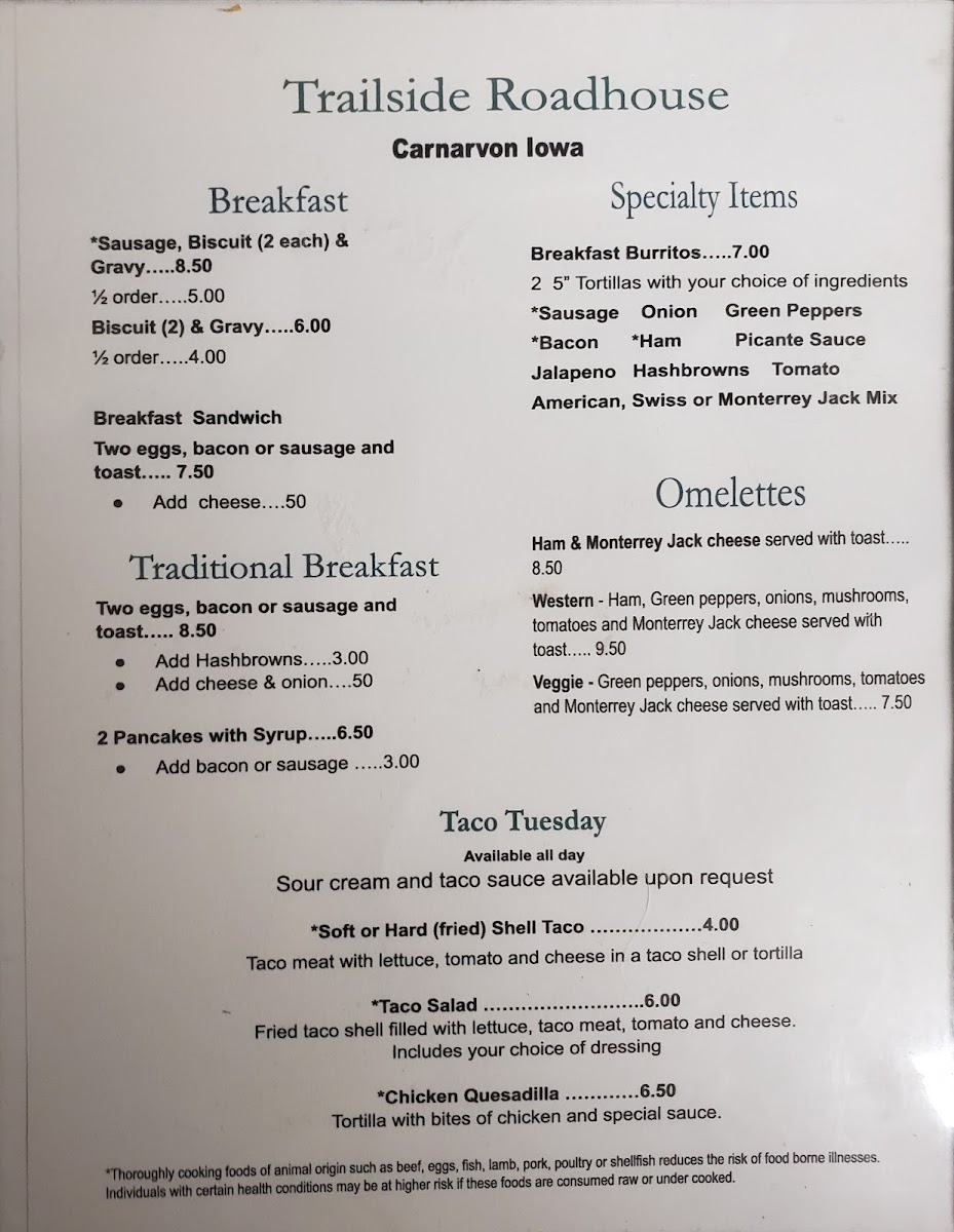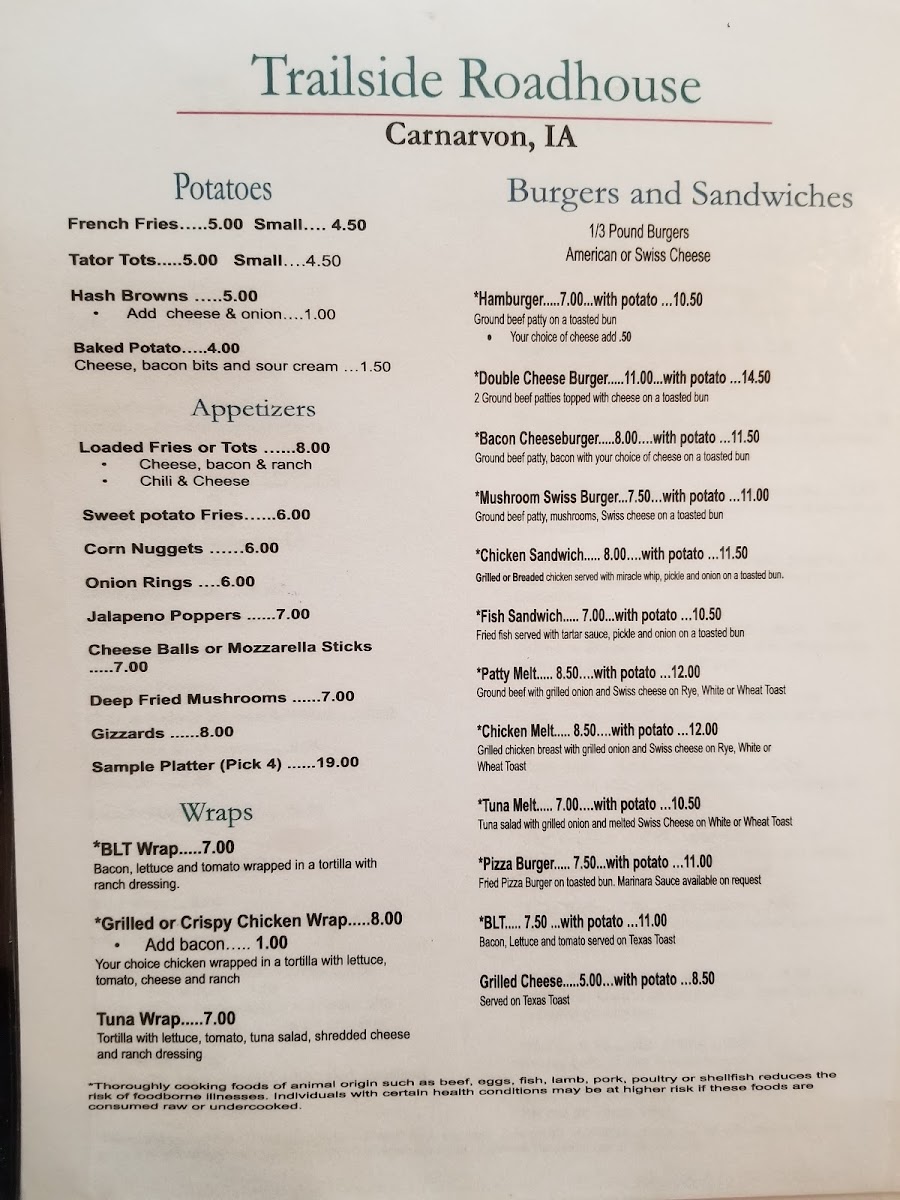 You’ll find the Trailside Roadhouse Menu feels like the kind of lineup that makes you slow down and enjoy the moment, especially if you’re passing through 110 370th St in Carnarvon. The offerings lean into hearty, comforting plates-the kind that show up sizzling, stacked, or perfectly crisped-so it’s easy to settle in and let your appetite steer the way.